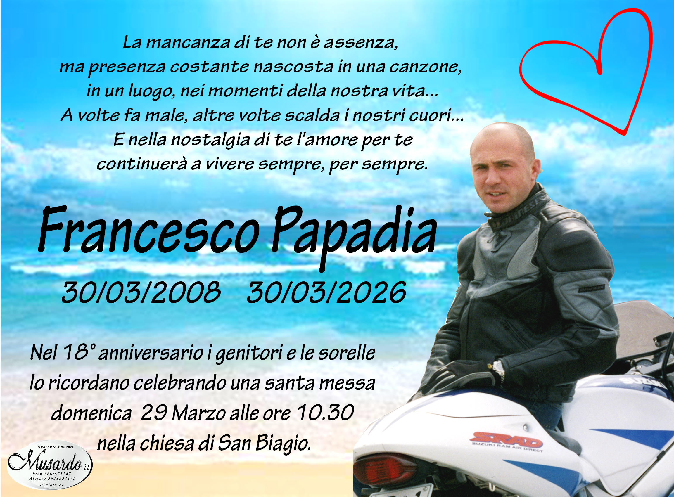 6 marzo 20246 marzo 2024annunci, tutti Invia un messaggio di cordoglio alla famiglia Potete inviare messaggi di cordoglio alla famiglia compilando il modulo in basso. Saremo lieti di provvedere a consegnarlo personalmente, in forma cartacea, riservata e gratuita. Il tuo nome (richiesto) La tua email (richiesto) Nome e Cognome del Defunto (richiesto) Il tuo messaggio di Cordoglio (richiesto) Con l'invio si autorizza al trattamento dei dati inseriti, ai sensi del D.Lgs. n.196/2003