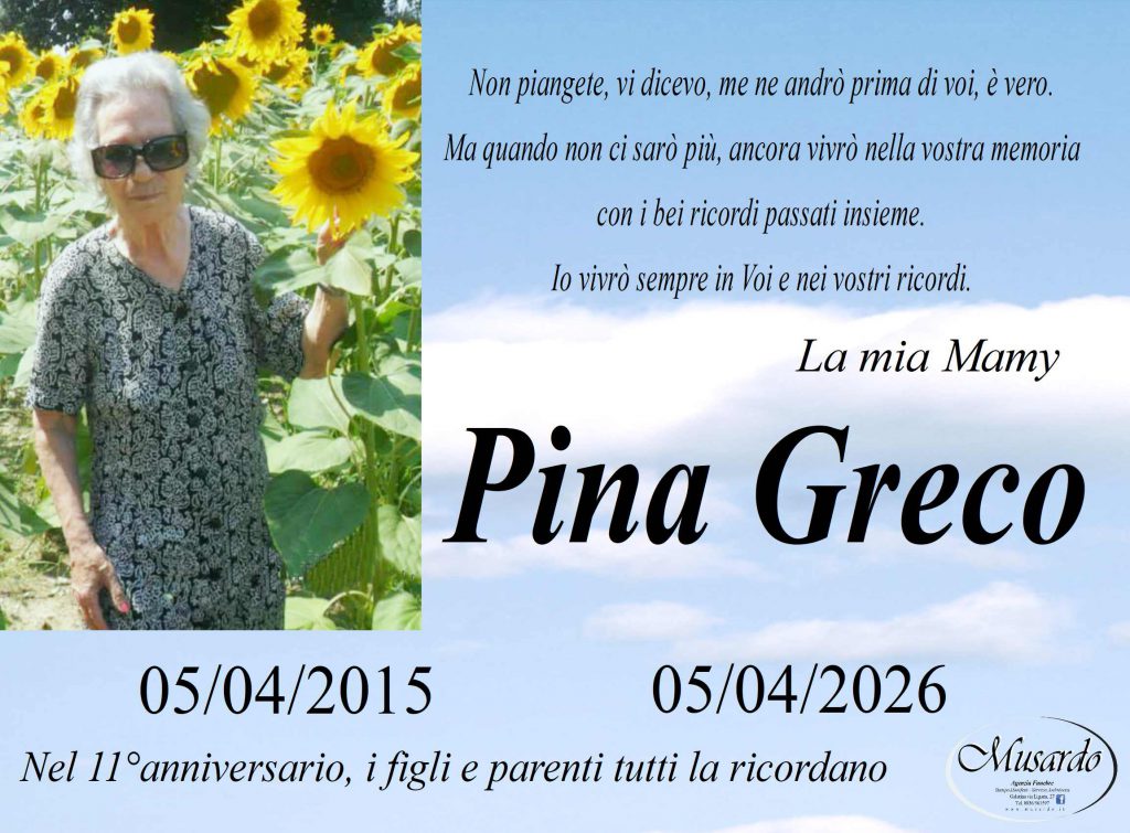 3 aprile 20263 aprile 2026anniversari, tutti Invia un messaggio di cordoglio alla famiglia Potete inviare messaggi di cordoglio alla famiglia compilando il modulo in basso. Saremo lieti di provvedere a consegnarlo personalmente, in forma cartacea, riservata e gratuita. Il tuo nome (richiesto) La tua email (richiesto) Nome e Cognome del Defunto (richiesto) Il tuo messaggio di Cordoglio (richiesto) Con l'invio si autorizza al trattamento dei dati inseriti, ai sensi del D.Lgs. n.196/2003