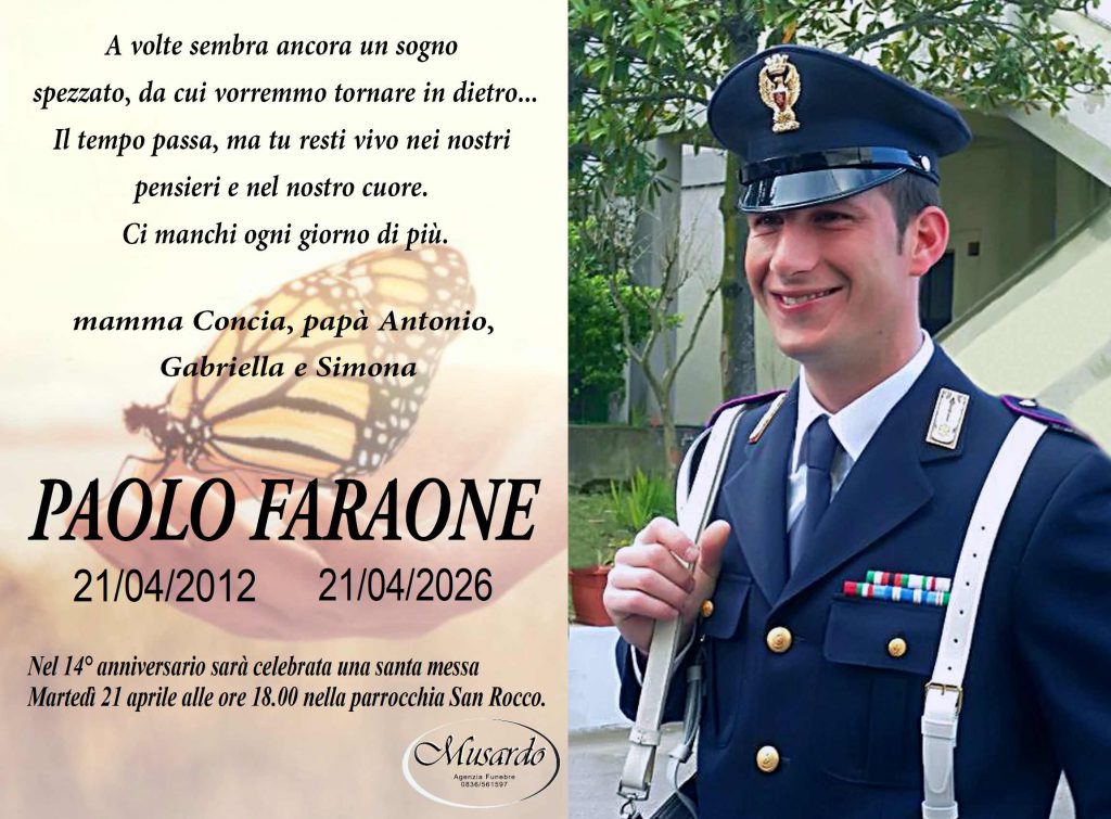 20 aprile 202620 aprile 2026anniversari, tutti Invia un messaggio di cordoglio alla famiglia Potete inviare messaggi di cordoglio alla famiglia compilando il modulo in basso. Saremo lieti di provvedere a consegnarlo personalmente, in forma cartacea, riservata e gratuita. Il tuo nome (richiesto) La tua email (richiesto) Nome e Cognome del Defunto (richiesto) Il tuo messaggio di Cordoglio (richiesto) Con l'invio si autorizza al trattamento dei dati inseriti, ai sensi del D.Lgs. n.196/2003